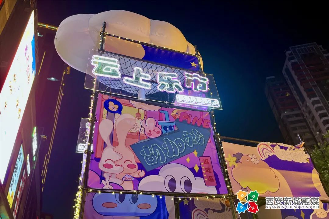 以“白云”和万和城IP形象“joey兔”为元素,结合网红内容,以及当下热门的城市露营风,所搭建出的主题夜晚集市,集购物中心、教培娱乐、零售体验、打卡拍照、互动表演、休闲观影为一体的创造新鲜场景,满足消费场景趣味性,具有较强吸客能力,在场景中沉浸式消费。