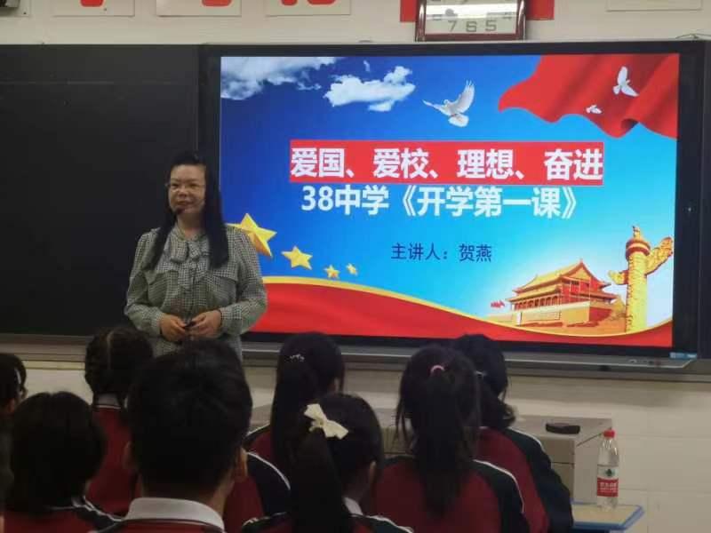 西安市第三十八中学的“开学第一课”以爱国爱校为主题,结合校史长廊教育,厚植学生爱国爱校情怀,树立学生正确的国家观、价值观,坚定政治信仰和追求,努力做强国新征程上的有为青年。