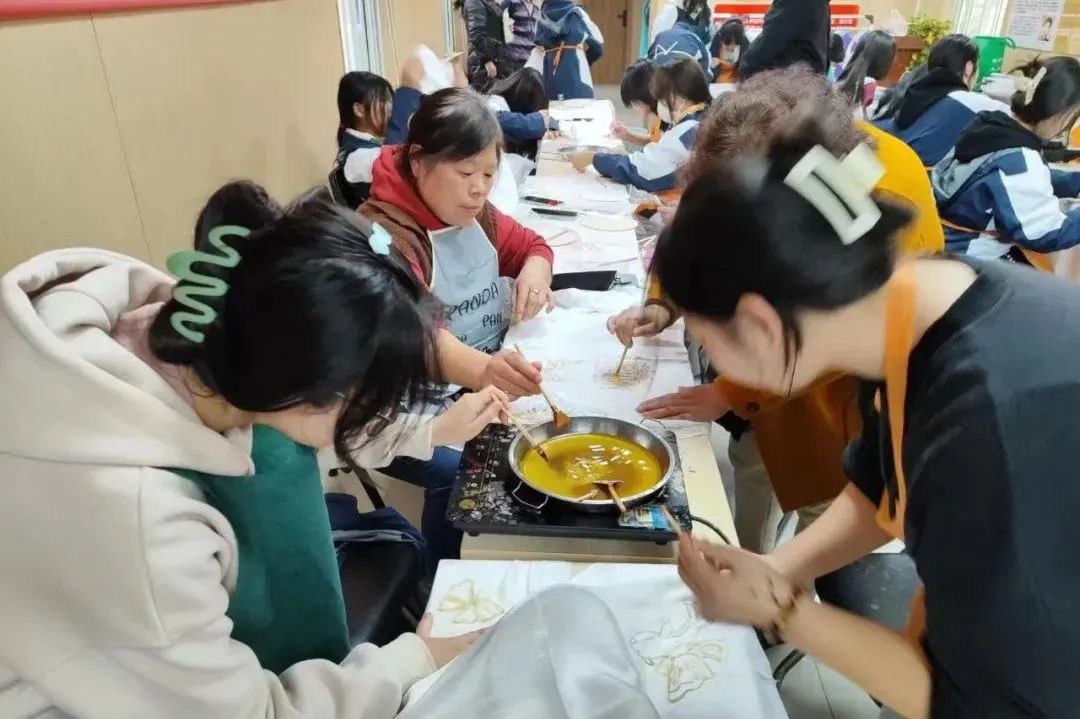活动中,工作人员为居民和学生们讲解了“昌仁里”地区的文化传承与发展,分享了地方民俗文化及非遗文化,并通过“古诗词接龙”“盲猜射覆”“智趣鲁班锁”等互动游戏,让大家在寓教于乐中学习了解传统文化。活动最后,工作人员组织居民和学生们体验了非遗蜡染,在动手中感受非遗魅力。