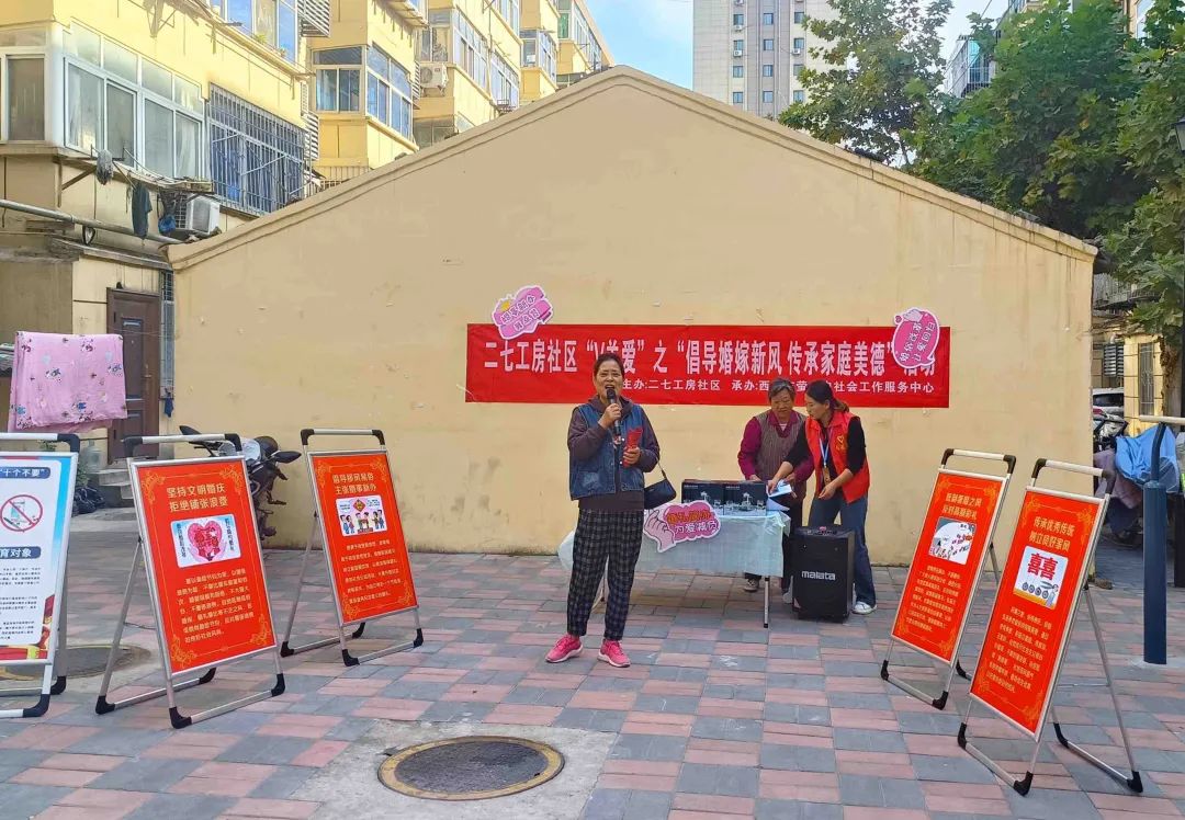 其中供电局社区与国网西安供电公司开展的“移风易俗润民心 文明新风扑面来”新婚俗宣传活动;半截巷社区“幸福婚姻,与法同行”新型婚俗文化宣传活动;二七工房社区“倡导婚嫁新风 传承家庭美德”活动;康家村社区“倡导文明婚俗 弘扬时代新风”文明婚俗宣传活动等。受到了辖区居民的一致好评,起到了积极的宣传效果。