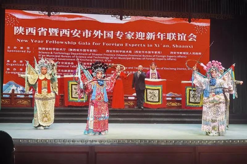 当天下午2时许,新年联谊会在号称世界“三大古老剧社”之一的西安易俗社拉开帷幕。活动由陕西省科技厅(省外专局)、西安市科技局(市外专局)和新城区人民政府共同主办,旨在进一步丰富外国专家的精神文化生活,增进外国专家对西安的认同感、归属感。