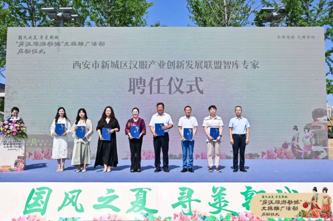 本次文旅推广活动以“国风之夏 寻美新城”为主题,推出了“穿汉服游新城”宣传短片、2024西安首届汉服嗨玩节、2024西安国乐大典、“穿越宫城站坊”主题城市观光车等活动内容。在启动仪式上,新城区相关部门牵头辖区生产设计、销售租赁、拍摄妆造、酒店民宿、景区街区等汉服产业链上下游头部企业,率先成立的我市首家汉服产业创新发展联盟成员单位集体登台亮相,联盟的成立旨在搭建行业发展平台、整合行业优质资源、共推行业互惠产品,并聘请行业专家和文化学者为汉服产业创新发展提供智慧支持,助力汉服产业健康高效发展。