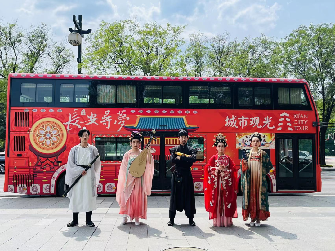 活动内容:联动西安城市观光车,推出“穿越宫城站坊”主题车辆,通过车辆形象包装、停靠站点及国风NPC诗词对答互动。
