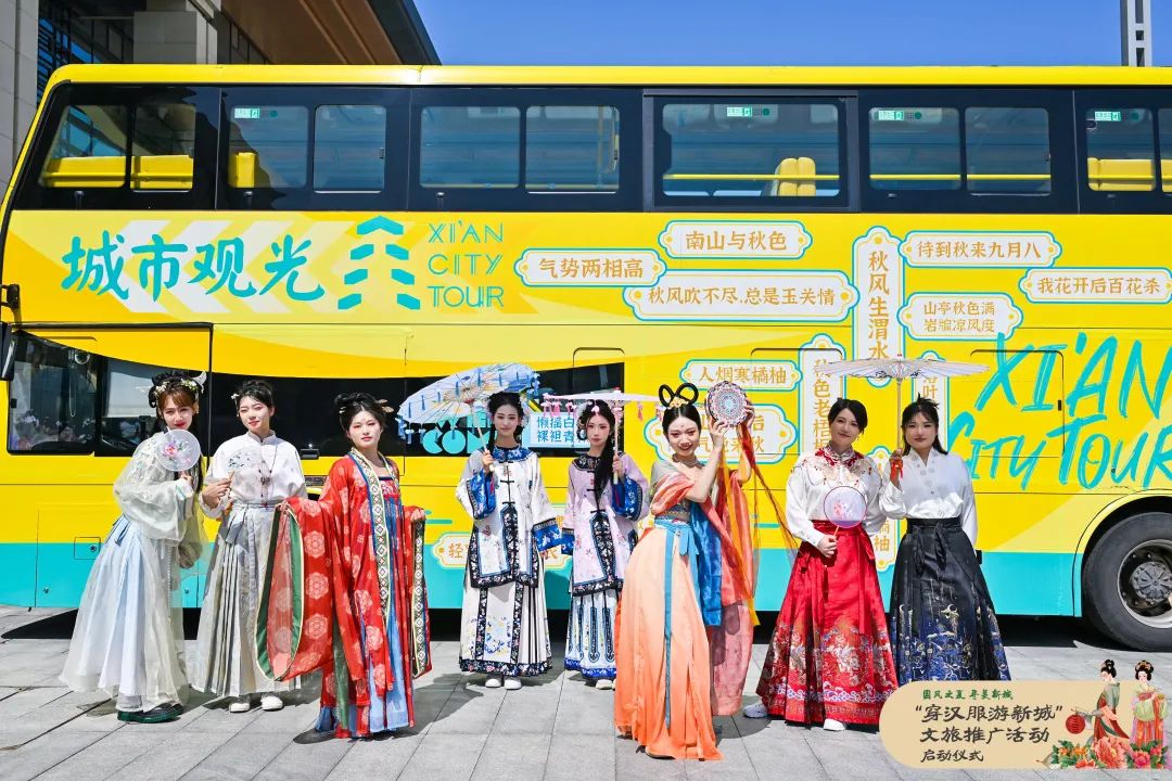 7月26日上午,由西安市文化和旅游局、西安市文物局、西安市工业和信息化局、西安市商务局、西安市投资合作局指导,中共西安市新城区委、新城区人民政府主办的2024“穿汉服游新城”文旅推广活动在西安站北广场正式启动。