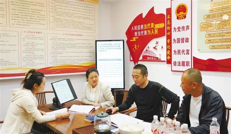 胡家庙街道第四人大代表工作室创新“三亮”“二有”“一融”的“321”工作法,代表亮身份、亮职责、亮履职,服务有温度、建言有深度。