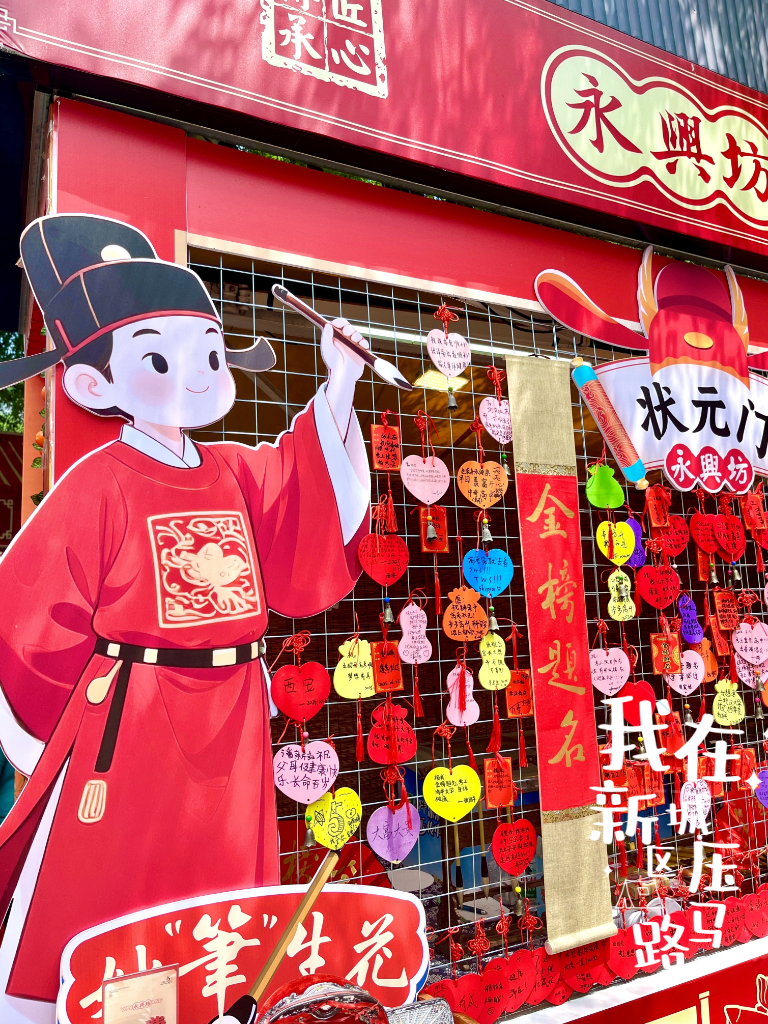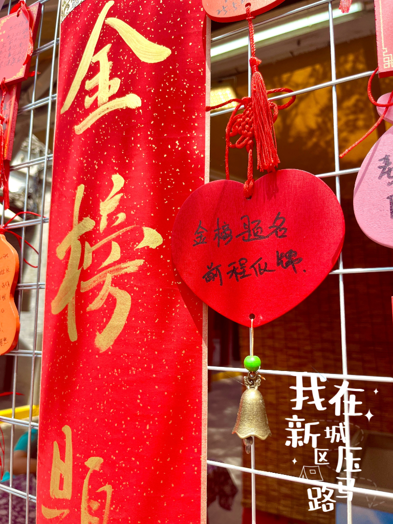 本周“我在新城区压马路”来到西安永兴坊非遗文化街区,在小小许愿牌上留下真挚滚烫的祝福语,祝福高考学子落笔生花、前程似锦!