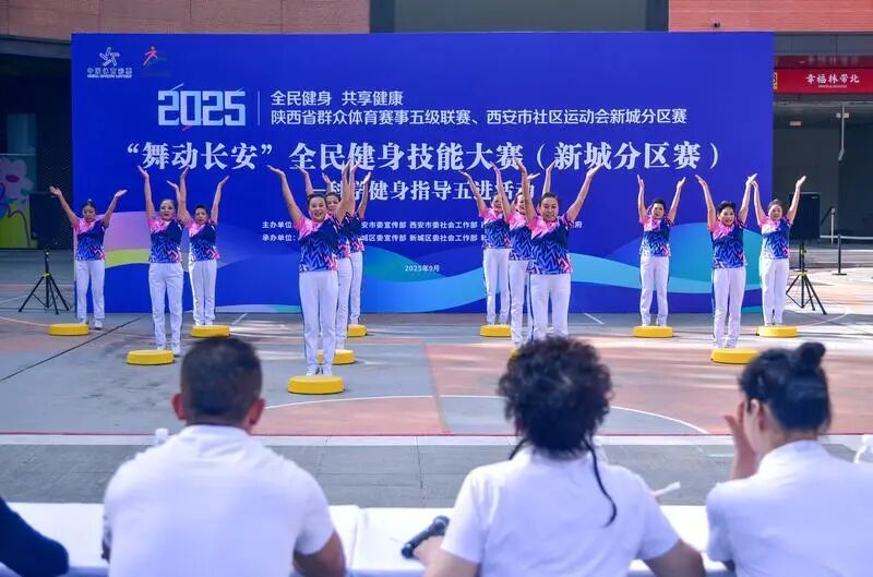 9月9日上午,新城区幸福林带内人头攒动、气氛热烈,2025年陕西省群众体育赛事五级联赛、西安市社区运动会新城分区赛、“舞动长安”西安市全民健身技能大赛(新城分区赛)及科学健身指导“五进”活动在此举行。本次活动深度融合了省、市、区三级群众体育赛事与科学健身服务,为广大市民奉献了一场精彩纷呈、活力四射的体育嘉年华,共有300多人参与其中。