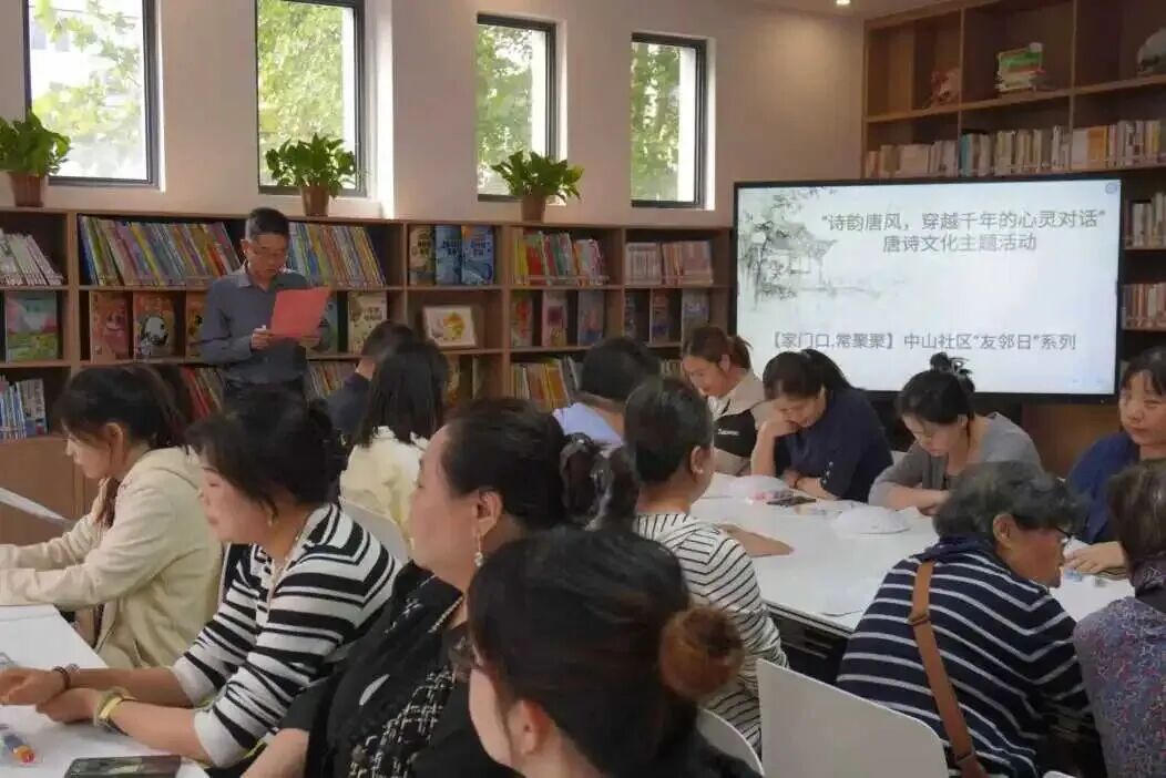 中山社区将唐诗文化与非物质文化遗产体验相结合,打造了“诗韵唐风,穿越千年的心灵对话”友邻日活动。将唐诗诵读、知识问答、安全科普与非遗手工创作巧妙融合,在“可听可看可动手”的沉浸式体验中,让千年的诗韵与匠心神交共鸣,极大地激发了居民的文化自豪感。