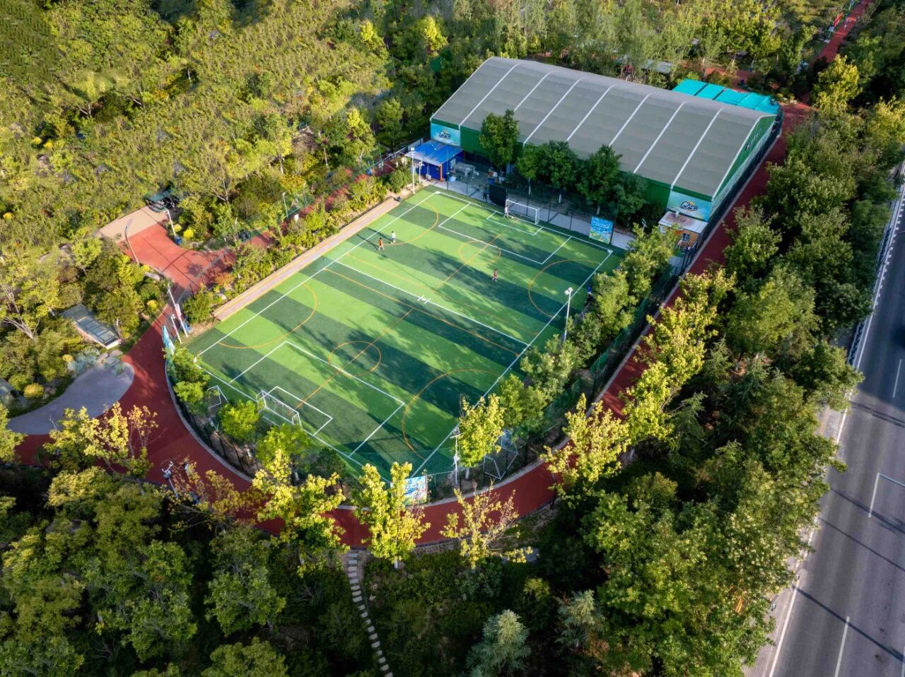 幸福林带的足球场成为运动好去处。