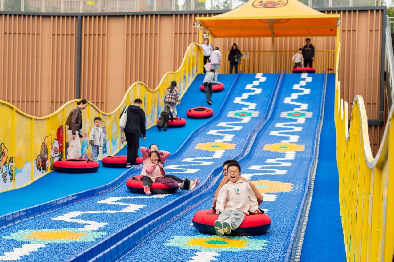 地上郁郁葱葱的绿色廊道间,足球场、篮球场、羽毛球场和10个体育健身广场,满足不同年龄、不同爱好市民的健身锻炼需求;地下空间内,集餐饮、购物、娱乐为一体的商业中心红火热闹,由图书馆、文化馆、非遗中心组成的文化广场则成为孩子们学习休闲的乐园,乘坐“幸福号”小火车穿梭其中,别有一番乐趣。