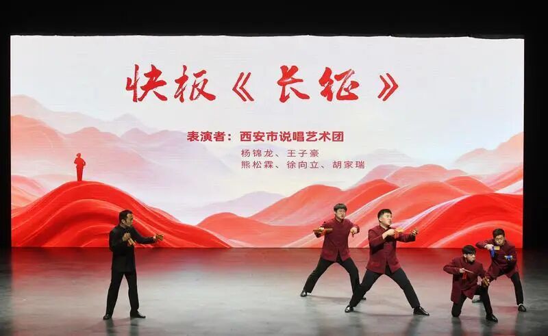 文艺展演环节精彩纷呈。精彩的文艺节目涵盖舞蹈、相声、秦腔、魔术、情景合唱等多元形式,群口快板《长征》、舞蹈《勺影脸谱梦》、相声《欢声笑语》、街舞 《笑舞苍穹》、秦腔《五郎出家》、独唱 《一杯美酒》、情景合唱《红色记忆》等节目,既饱含中华优秀传统文化底蕴,又彰显新时代文艺活力。