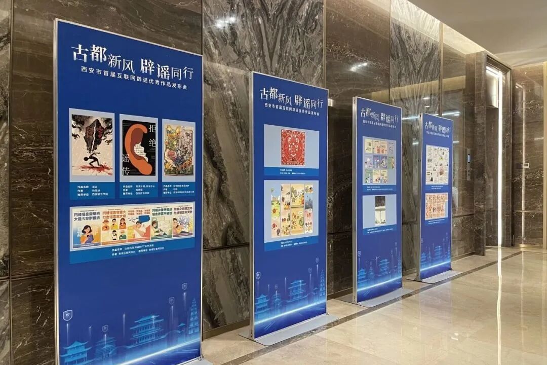 在发布会上,新城区委网信办投稿的《辟谣》视频MV荣获一等奖,“古都风行 辟谣同行”系列海报荣获二等奖,《“吃瓜”需冷静 谣言勿相传》长图漫画荣获优秀奖。