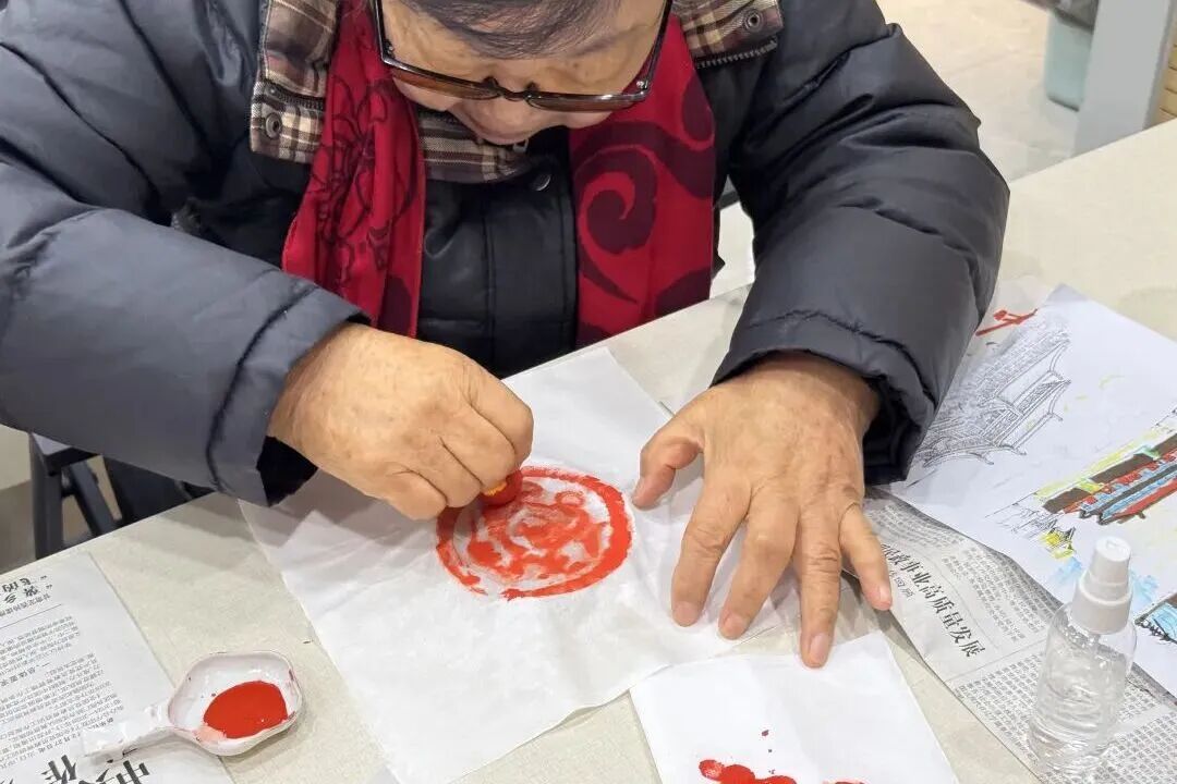 在非遗讲师的细致指导下,居民们耐心细致地浸湿宣纸、轻覆瓦当、平刷压实、毛刷晕染,每一个步骤都一丝不苟。随着墨色缓缓渗透宣纸,瓦当上的古朴纹样逐渐清晰呈现,现场不时响起“太神奇了!”“好美啊!”的赞叹声,居民们手捧亲手制作的拓片,脸上洋溢着收获的喜悦。“讲得太好了!最近一定要抽空去实地打卡,亲身感受诗歌里的盛唐气象。”居民李阿姨的话道出了现场许多人的心声。“这些老祖宗留下的非遗宝贝,值得好好传承下去。”一位参与拓印的居民感慨道。